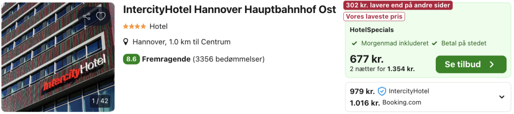 Vi har taget udgangspunkt i en forlænget weekend fra den 21. – 23. november på IntercityHotel Hannover Hauptbahnhof-Ost, som er et moderne 4-stjernet hotel, ideelt placeret på østsiden af Hannovers hovedbanegård. Hotellet byder på 220 værelser fordelt over 14 etager, alle designet af Matteo Thun, og tilbyder faciliteter som gratis Wi-Fi, aircondition, fladskærms-tv samt skrivebord og værdiboks. Hotellets centrale beliggenhed gør det nemt at udforske byens seværdigheder.