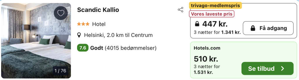 Bemærk: Husk at lade søgningen blive helt færdig. Vælg Laveste Pris på Trivago. Der kan være mindre prisforskelle på mobil og pc. Undersøg med fordel, hvor det er billigst inden bestilling.