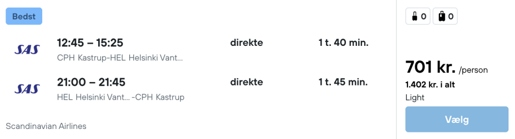På vores flysøgningsmaskine har vi fundet billige billetter fra København til Helsinki:
