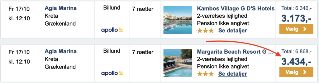 Bemærk: Apollo viser den samlede pris for 2 personer. Prisen er ikke opdateret hos Travelmarket endnu. Vælg Margarita Beach Resort GD’s Hotels for at opnå den bedste pris.