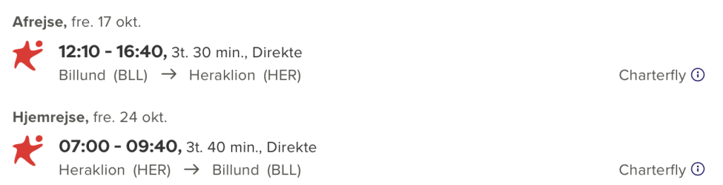 Hvis rejsen er med “Vis rejse” link, så er der tale om en pakkerejse, hvor fly og hotel bestilles på en gang.