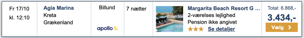 På Travelmarket har vi fundet gode tilbud med Apollo fra Billund til Kreta!