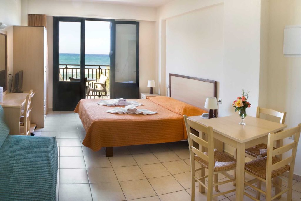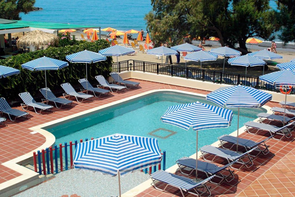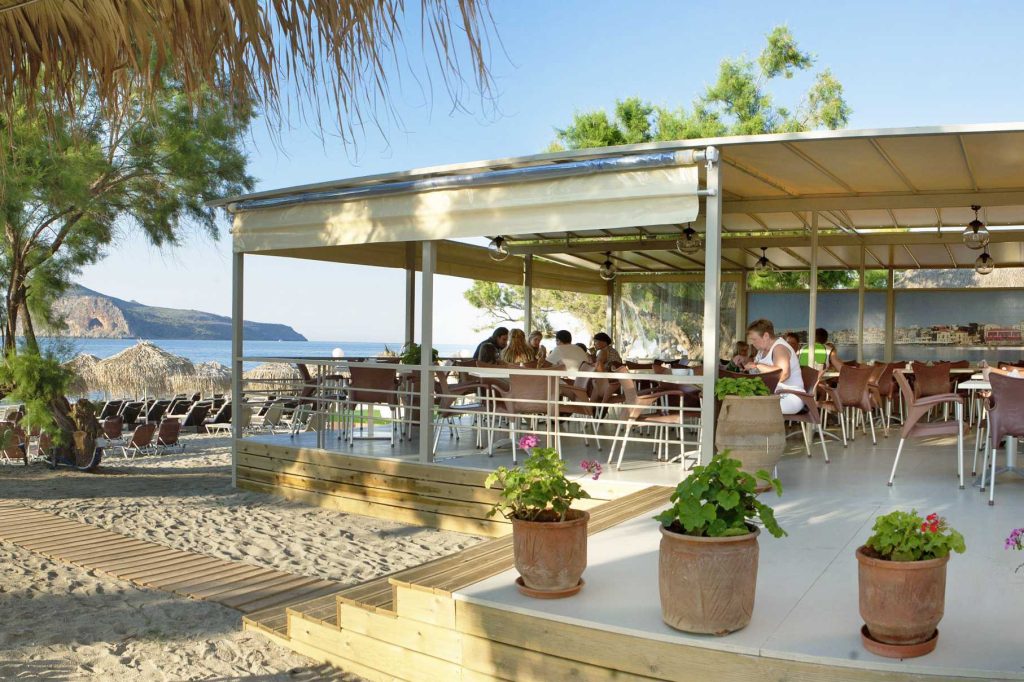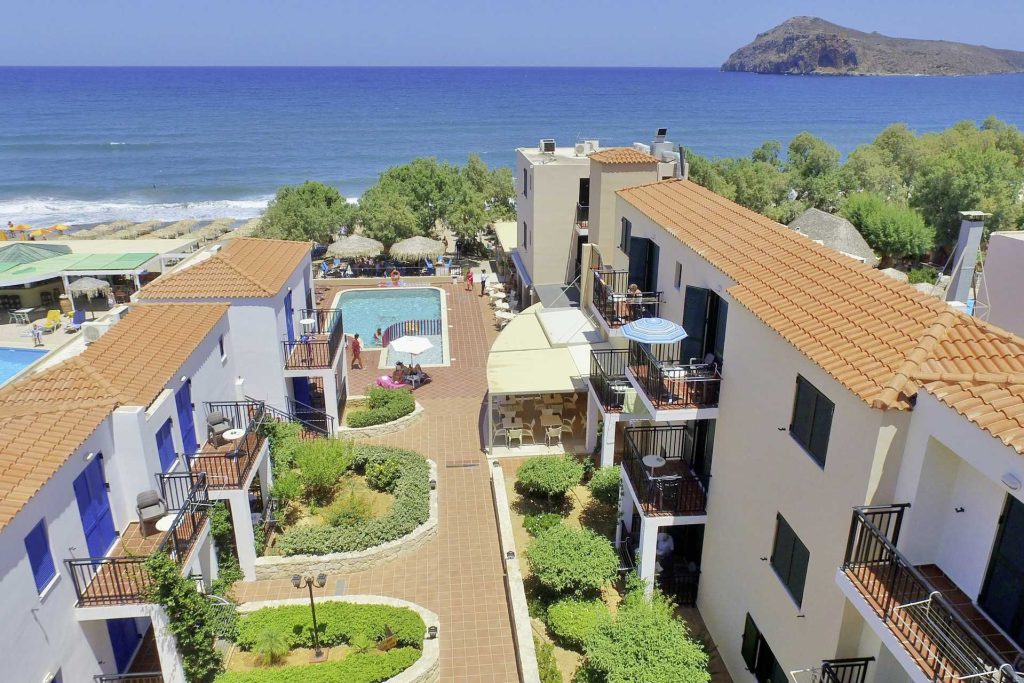 Hotellet består af flere bygninger og ligger kun få skridt fra den fine sand- og stenstrand. Der er omkring 750 meter til Platanias centrum, hvor et bredt udvalg af restauranter, barer og natteliv venter. For dem, der foretrækker et roligere tempo, er der mulighed for en hyggelig gåtur gennem olivenlundene til den ældre del af byen, hvor man oplever den græske hverdag tæt på.