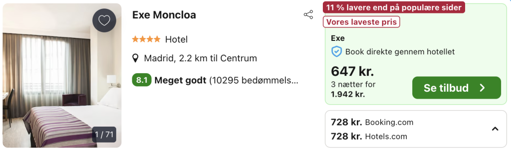 Hvis rejsen er med “Vis rejse” link, så er der tale om en pakkerejse, hvor fly og hotel bestilles på en gang.