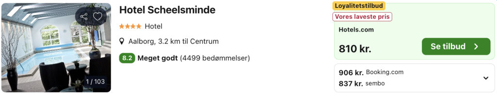 Vælg Hotels.com på trivago og opret en gratis bruger eller log ind. Derved opnås den billigste pris.