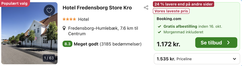 Vælg booking.com på trivago og log ind / opret en gratis bruger. Derved opnås den bedste pris.