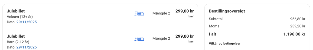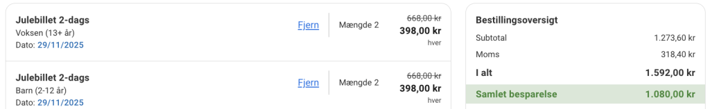 Vi har taget udgangspunkt i en dagsbillet til 299,- per person.