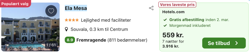 Bemærk: Husk at lade søgningen blive helt færdig. Der kan være mindre prisforskelle på mobil og pc. Undersøg med fordel, hvor det er billigst inden bestilling. Vælg Laveste Pris på Trivago.