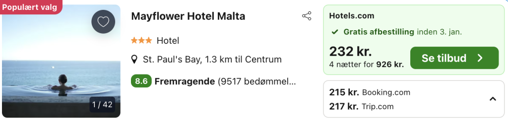 Hvis rejsen er med “Vis rejse” link, så er der tale om en pakkerejse, hvor fly og hotel bestilles på en gang.