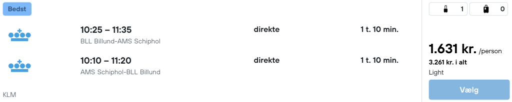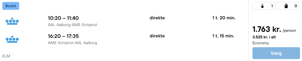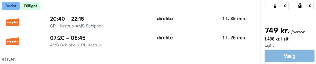 På vores flysøgningsmaskine har vi fundet direkte flybilletter fra København, Aalborg og Billund til Amsterdam.
