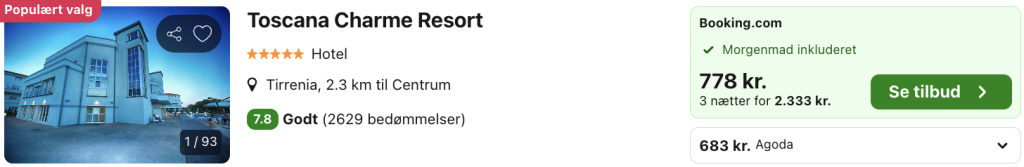 Hvis rejsen er med “Vis rejse” link, så er der tale om en pakkerejse, hvor fly og hotel bestilles på en gang.