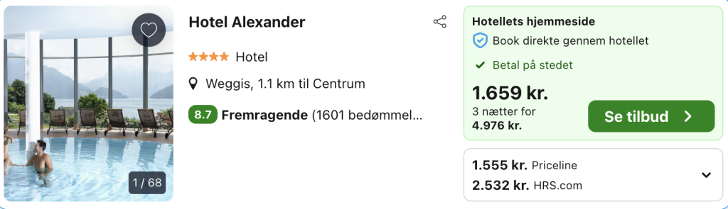 Husk at lade søgningen blive helt færdig. Vælg Laveste Pris på Trivago.