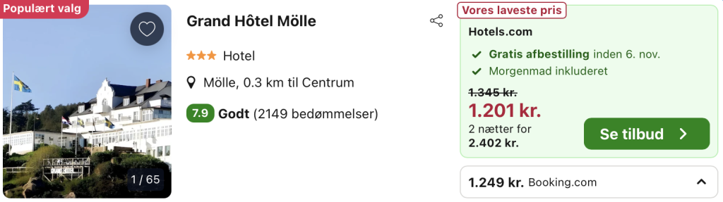 Vi har taget udgangspunkt i et ophold fra den 7. – 9. november på Grand Hotel Mölle, der ligger smukt placeret ved Skånes dramatiske kystlinje og emmer af både historie og charme. Med sin klassiske arkitektur og panoramiske udsigt over havet giver hotellet en unik atmosfære, hvor luksus og afslappet feriestemning går hånd i hånd. Indenfor mødes du af elegante rum, hvor klassisk design kombineres med moderne komfort, og hvor hver detalje er gennemtænkt for at skabe en oplevelse ud over det sædvanlige. Restauranten byder på kulinariske oplevelser med fokus på friske, lokale råvarer, serveret med udsigt over Kattegat, der kan tage pusten fra enhver.