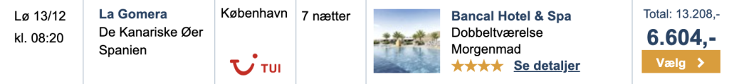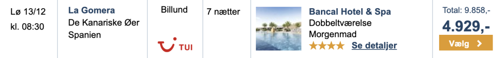 Hos Travelmarket med TUI har vi fundet gode tilbud fra Billund og København til La Gomera.