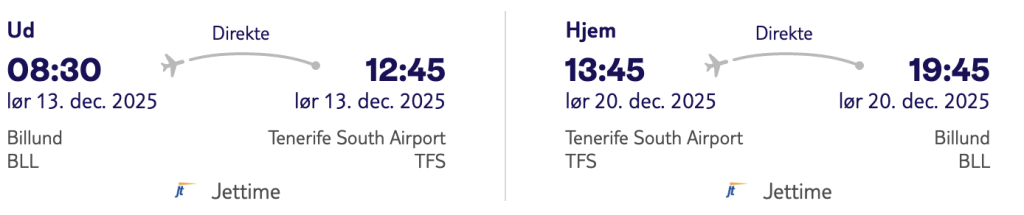 Hvis rejsen er med “Vis rejse” link, så er der tale om en pakkerejse, hvor fly og hotel bestilles på en gang.
