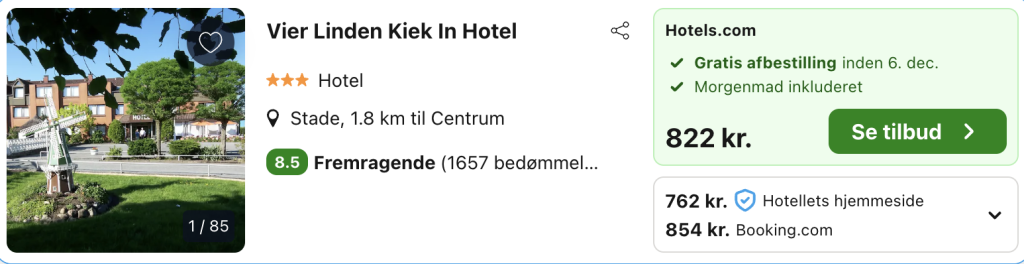![]() Bemærk: Den samlede pris for opholdet er 762,- for 2 personer i et dobbeltværelse, hvilket svarer til 381,- per person. Rejs365 er ikke et rejsebureau, men en rejseside, der finder gode tilbud! – Vi modtager kommission, men det påvirker ikke din pris! Læs mere her