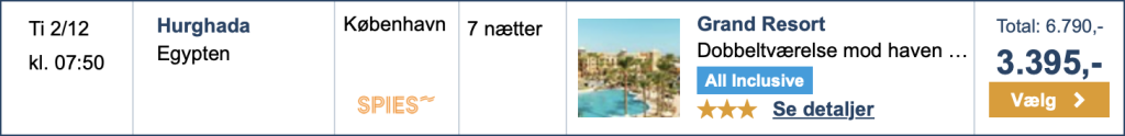 På Travelmarket har vi fundet et godt tilbud med Spies fra København til Hurghada.
