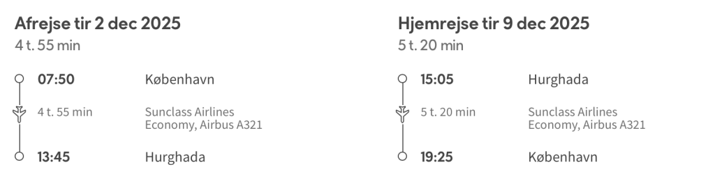 Hvis rejsen er med “Vis rejse” link, så er der tale om en pakkerejse, hvor fly og hotel bestilles på en gang.