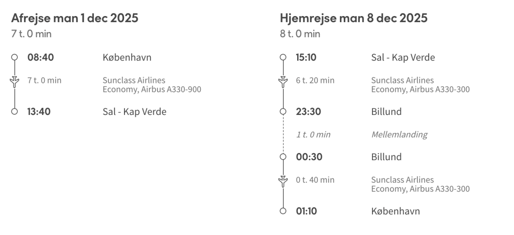 Hvis rejsen er med “Vis rejse” link, så er der tale om en pakkerejse, hvor fly og hotel bestilles på en gang.