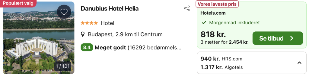 Bemærk: Husk at lade søgningen på fly og hotel blive helt færdig. Der kan være mindre prisforskelle på mobil og pc. Vælg “Vores laveste pris” på trivago, for at opnå den bedste pris på hotellet.