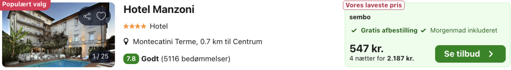 5 dage i Montecatini Terme i Toscana for kun 1.435,- per person inkl. fly og flot 4-stjernet wellness-hotel med sauna, dampbad, hydroterapi, pool og morgenmad!