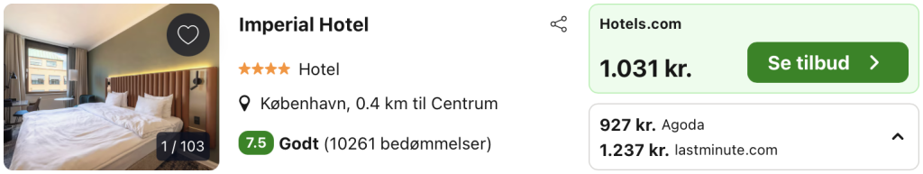 Ophold på det 4-stjernede Imperial Hotel for kun 464,- per person inkl. flot værelse i hjertet af København!