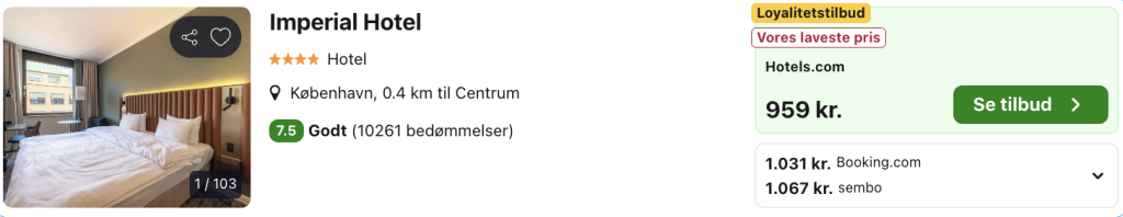 Ophold på det 4-stjernede Imperial Hotel for kun 480,- per person inkl. flot værelse i hjertet af København!
