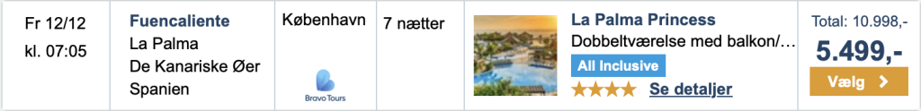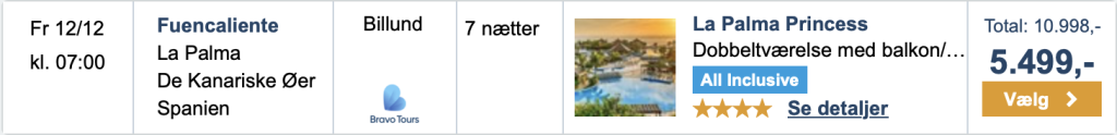 På Travelmarket har vi fundet et gode tilbud med Bravo Tours fra København og Billund til La Palma: