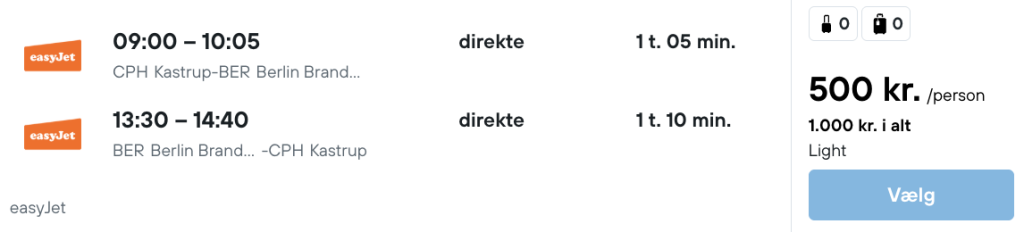 Hvis rejsen er med “Vis rejse” link, så er der tale om en pakkerejse, hvor fly og hotel bestilles på en gang.