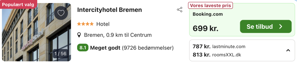 ![]() Bemærk: Den samlede pris for opholdet er 699,- for 2 personer i et dobbeltværelse, hvilket svarer til 350,- per person. Rejs365 er ikke et rejsebureau, men en rejseside, der finder gode tilbud! – Vi modtager kommission, men det påvirker ikke din pris! Læs mere her |