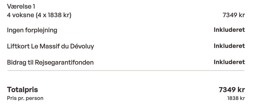 6-dages liftkort er inkluderet (værdi: 1.642,- per person). Det er muligt at tilkøbe flere dage, såfremt det ønskes.