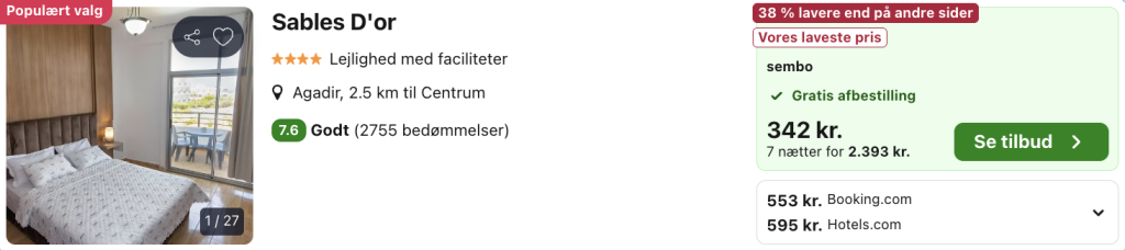 1 uge i Agadir for kun 2.456,- per person inkl. fly og 4-stjernet lejlighedshotel med pool og god beliggenhed!