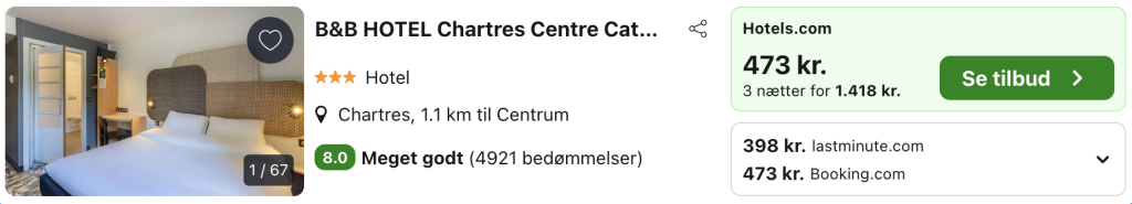 4 dage i Chartres for kun 1.171,- per person inkl. fly og godt hotel med fantastisk beliggenhed!