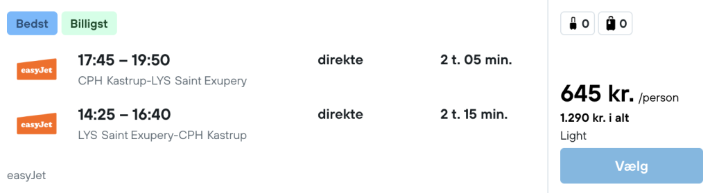 På vores flysøgningsmaskine har vi fundet billige flybilletter fra København til Lyon.