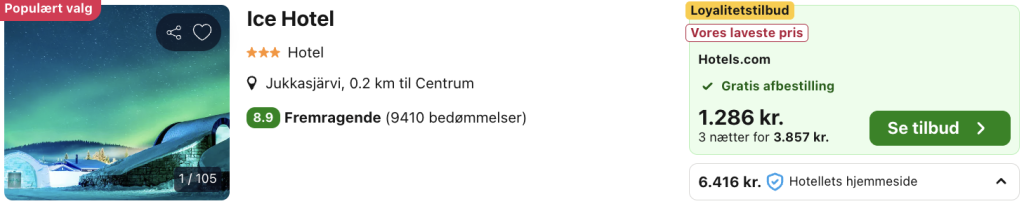 Vælg hotels.com på trivago og log ind / opret en gratis bruger. Derved opnås den bedste pris.