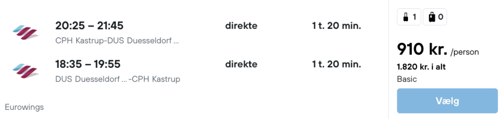 På vores flysøgemasking har vi fundet billige flybilletter fra København til Düsseldorf: