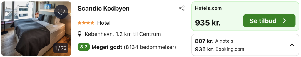 Husk at logge ind / oprette en gratis bruger på trivago samt hos Algotels. Derved opnås den bedste pris!