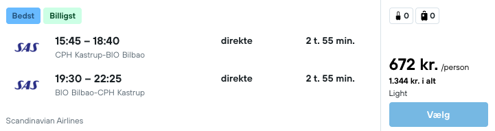 Vi har fundet billige flybilletter fra København til Bilbao:
