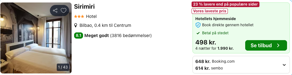 5 dage i Bilbao for kun 1.667,- per person inkl. fly og 4-stjernet hotel med god beliggenhed!