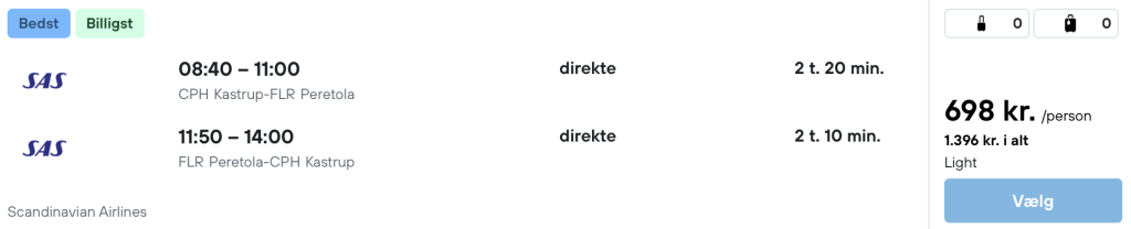 Flyprisen inkluderer kun en lille taske, men bagage kan tilkøbes.