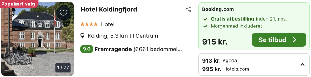 Vi har taget udgangspunkt i et ophold fra den 23. – 24. november på Hotel Koldingfjord, der ligger smukt ved Kolding Fjord og kombinerer klassisk arkitektur med moderne komfort. Bygningen, der stammer fra 1911, blev oprindeligt opført som sanatorium, hvilket tilføjer en historisk charme til hotellets elegante omgivelser. Mange værelser byder på en betagende udsigt over fjorden og er indrettet med fokus på både historie og komfort.