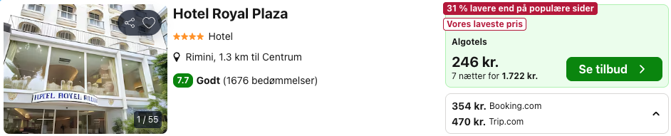 1 uge i Rimini for kun 1.210,- per person inkl. fly og flot 4-stjernet hotel med super beliggenhed!