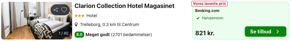Weekendophold i Trelleborg med morgenmad og aftensmad for kun 411,- per person inkl. godt hotel med central beliggenhed!