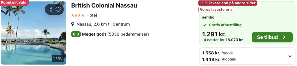 2 uger på Bahamas for kun 14.138,- per person inkl. fly og flot 4-stjernet resort med beliggenhed på stranden!