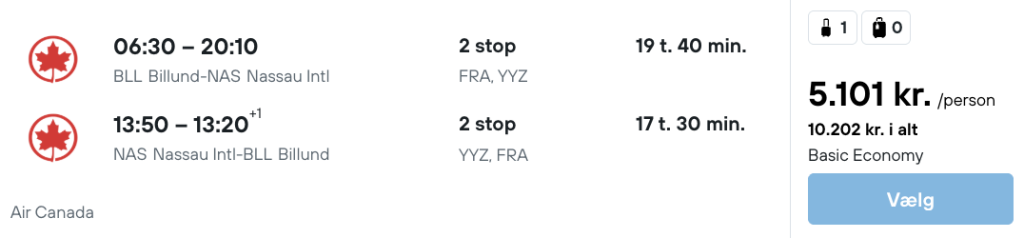 På vores flysøgemaskine har vi fundet billige billetter fra Billund og København til Bahamas.