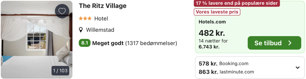 2 uger på Curaçao for kun 9.340,- inkl. fly og flot 3-stjernet hotel med pool og god beliggenhed!