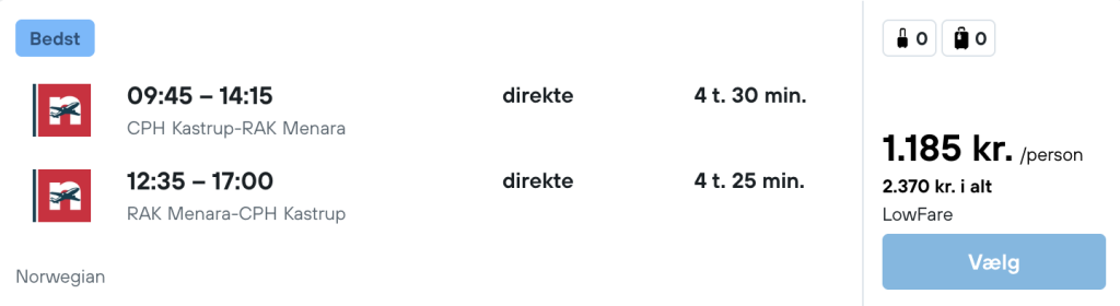 På vores flysøgemaskine har vi fundet billige flybilletter fra København til Marrakech:
