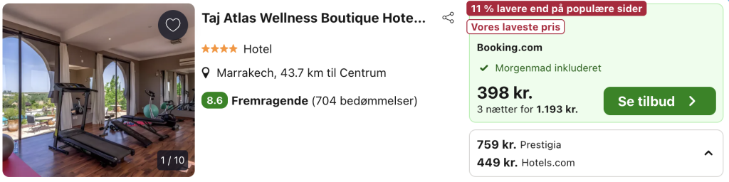Hvis rejsen er med “Vis rejse” link, så er der tale om en pakkerejse, hvor fly og hotel bestilles på en gang.