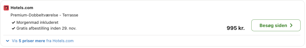 Vælg Hotels.com for at opnå den bedste pris.