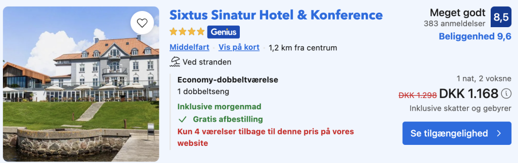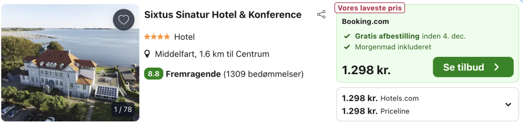 Vælg booking.com på trivago og log ind / opret en gratis bruger. Derved opnås den bedste pris på hotellet!